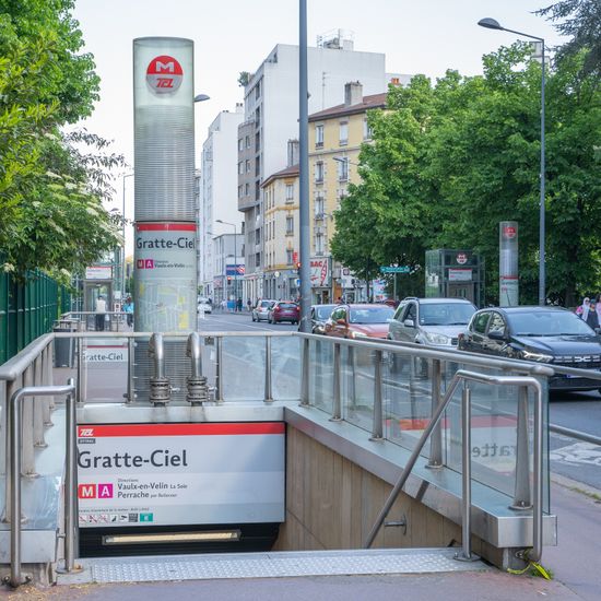 - Métro A – Gratte-Ciel, Bus ligne C26, 69 et 27