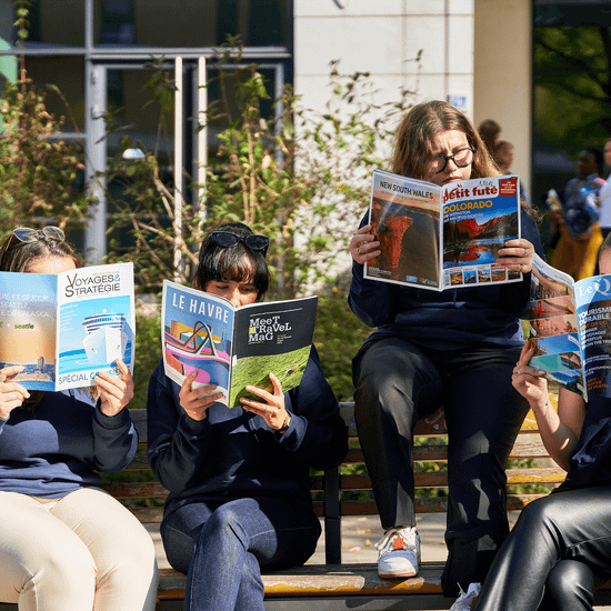 22 500 m2 de locaux, 2 caféterias, Amphithéâtres, Salles informatique (MAC et PC), 1 Hub (centre de documentation), Incubateur, vie étudiante avec le BDE, 80% d’intervenants experts et professionnels du tourisme. Réinventez le voyage !